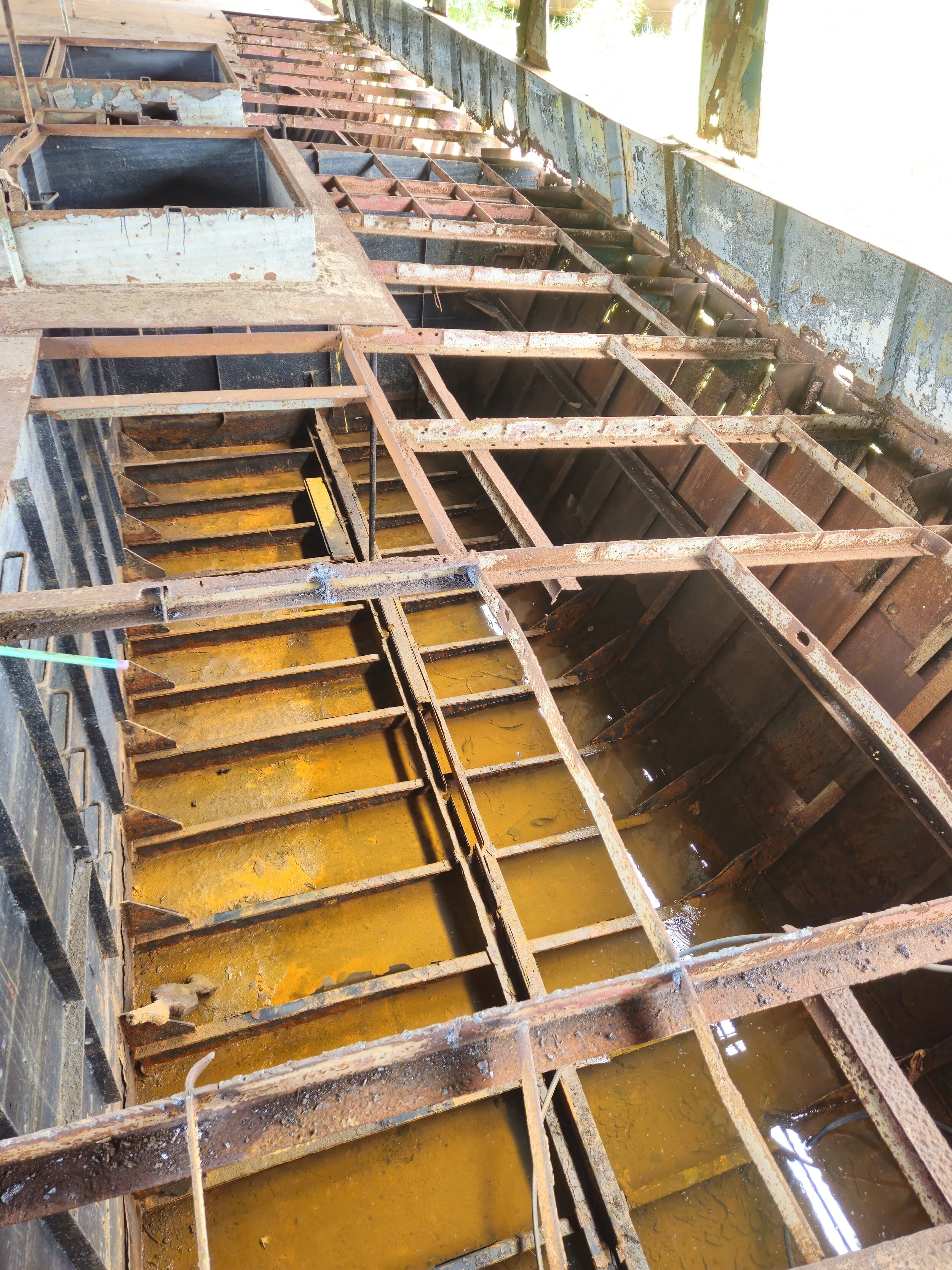 Vivaldo, der einsame Herr, lud uns ohne Umschweife dazu ein das Schiff zu betreten. An Bord bekamen wir die volle Tour, doch Vorsicht war geboten! Der ungefähr 100 Jahre alte Amazonasdampfer war von Rost zerfressen. Überall befanden sich Löcher, an Wänden, wie im Boden. Ein einziger falscher Schritt hätte schmerzhaft enden können. Vivaldo erzählte uns, dass das Wrack einem Geschäftsmann aus Lima gehört und er es in dessen Auftrag gemeinsam mit knapp 40 Mann restauriert. Luca und ich konnten gar nicht glauben, dass der Metallhaufen überhaupt nochmal auslaufen könnte. Bis zu diesem Moment dachten wir noch, dass hier abgewrackt werden würde. Dass sich jemand diese Arbeit machen würde und die dann auch noch rentabel sein würde, ging nicht in unseren Kopf.
