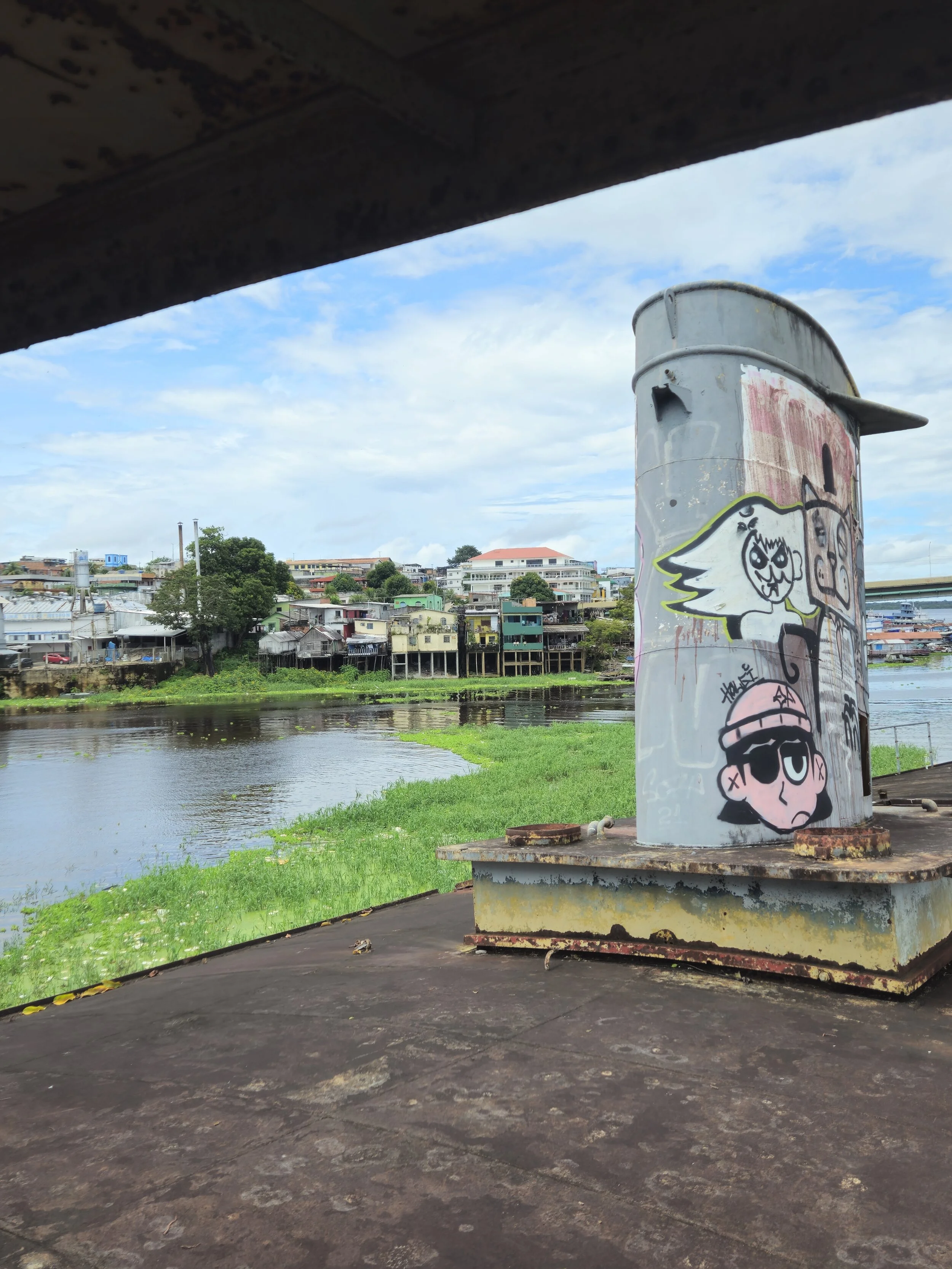 Anschließend zur Stärkung führte uns Vivaldo durch einen älteren Stadtteil, am Straßenstrich vorbei, bis wir an einer Aussichtsplattform gelangten. Wir schlenderten über angeschlossenen Steg und genossen die Aussicht über den Rio Negro. Auf dem Rückweg zu Land fiel Luca und mir die angrenzende Polizeistation auf. Vivaldo plauderte etwas aus dem Nähkästchen und erzählte uns von seiner eigenen Vergangenheit als Teil der brasilianischen Navy. Er erwähnte, dass er an anti-Narco Einsätzen nahe der bolivianischen Grenze beteiligt war. Auf Nachfrage Lucas bestätigte er auch, dass es zu tödlichen Zusammenstößen kam, während derer er sich dazu gezwungen sah sich mit Waffengewalt zu verteidigen. Wir vertieften das Thema nicht viel weiter…