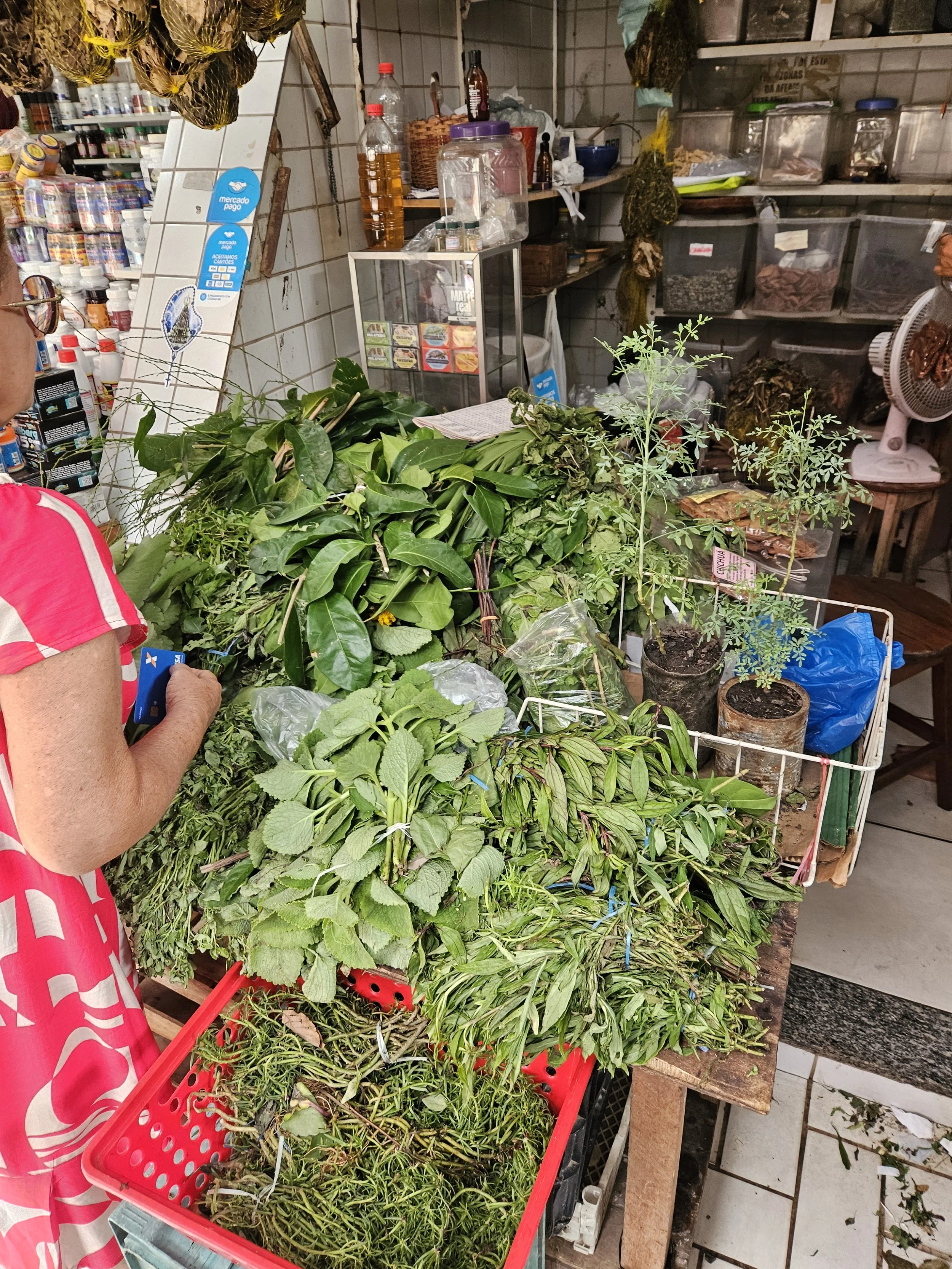 Vivaldos Tour startete wieder am selben Schiffswrack, wo wir ihn abholten. Er zog sich schnell um und führte uns im Anschluss über den anliegenden Markt. Neben allerlei frischer Lebensmittel bot die Markthalle eine Ecke mit traditionellen Heilmitteln. Die Banca da Japonesa bietet alles, was man sich nur vorstellen kann. Frische Heilkräuter, Tinkturen, Salben, Kapseln,… ein wahrer Traum für mich.