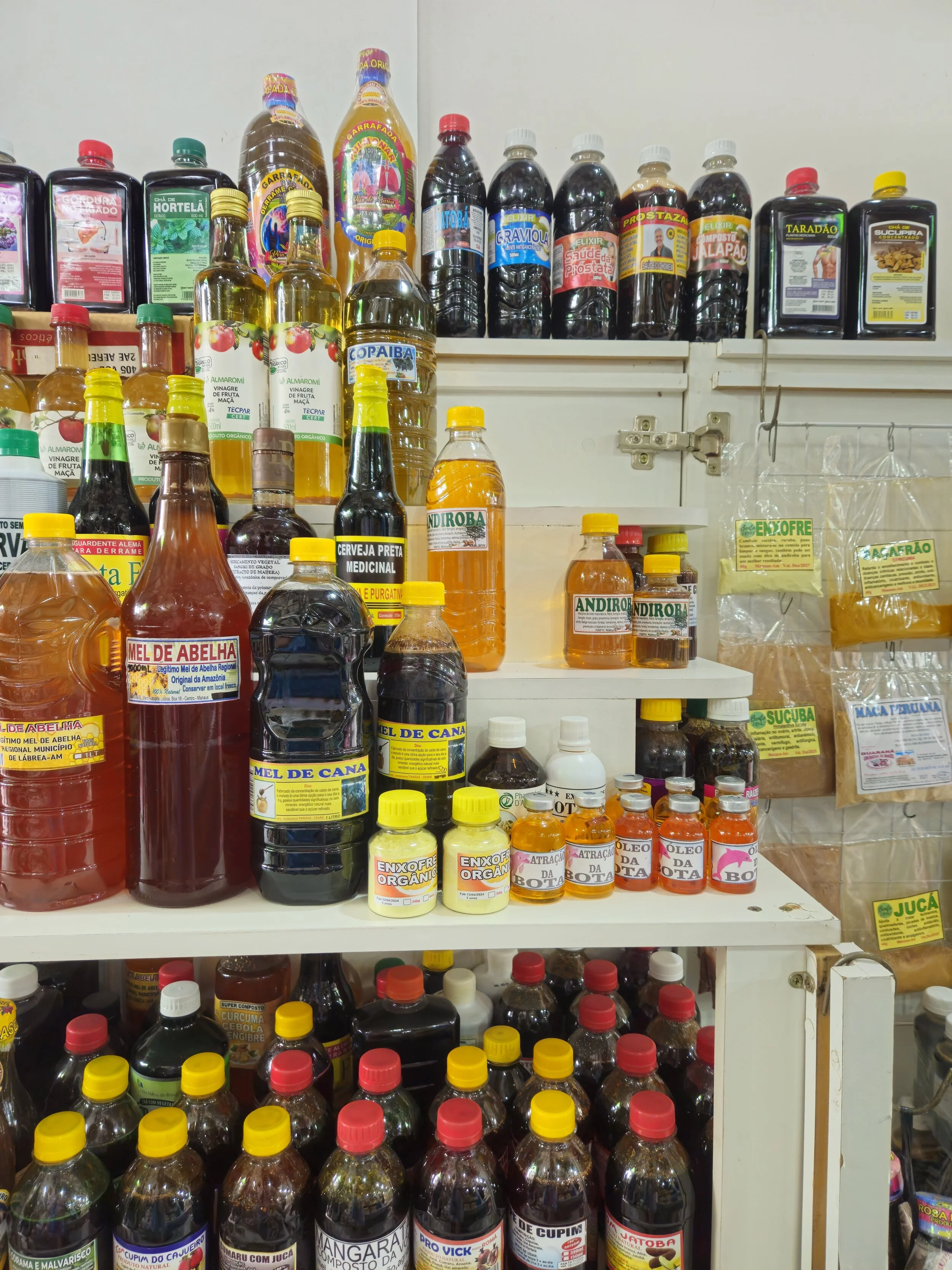 Wir statteten der Banca da Japonesa einen weiteren Besuch ab, diesmal aber um des Shoppens willen. Mit der traditionellen Medizin des Amazonas wollte ich schon immer in Kontakt kommen, heute habe ich sie im Kühlschrank stehen. Zusammen kauften wir Wurzeln, Rinden, Öle,…für knapp 50 Euro ein. Viele der Mittel sollen gegen Krebs, Rheuma, Depression und weitere scherwiegende Krankheiten helfen. Einfach traumhaft, sich an diesem alten traditionellen Wissen bedienen zu dürfen. Daraufhin besuchten wir noch 2-3 weitere Markthallen, aßen Acai und hielten irgendwie die Sonne aus.