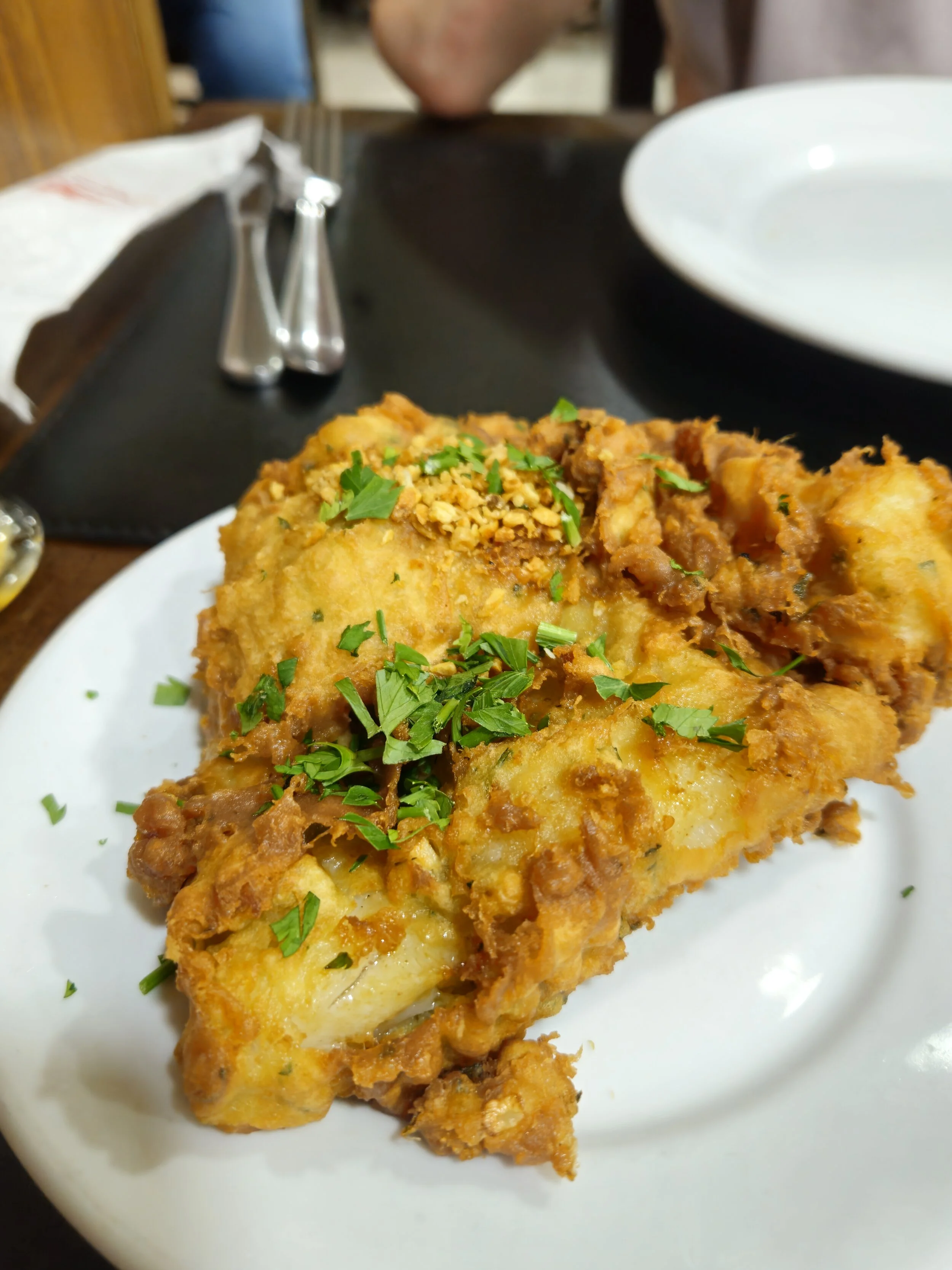 Zu Abend besuchten wir das portugiesisch-brasilianisches Restaurant “Calçada Alta” nahe dem historischen Stadtzentrum. Zur Vorspeise teilten wir uns Stockfischbruschetta und eine frittierte Stockfischvariation, die 2012 irgendeinen Food Contest gewonnen hat. Unsere Hauptspeise war ein Fischfilet in Jambú-Soße, leider schon etwas kalt. Trotzdem war sie sooo lecker, dass wir brav aufaßen ohne uns zu beschweren.