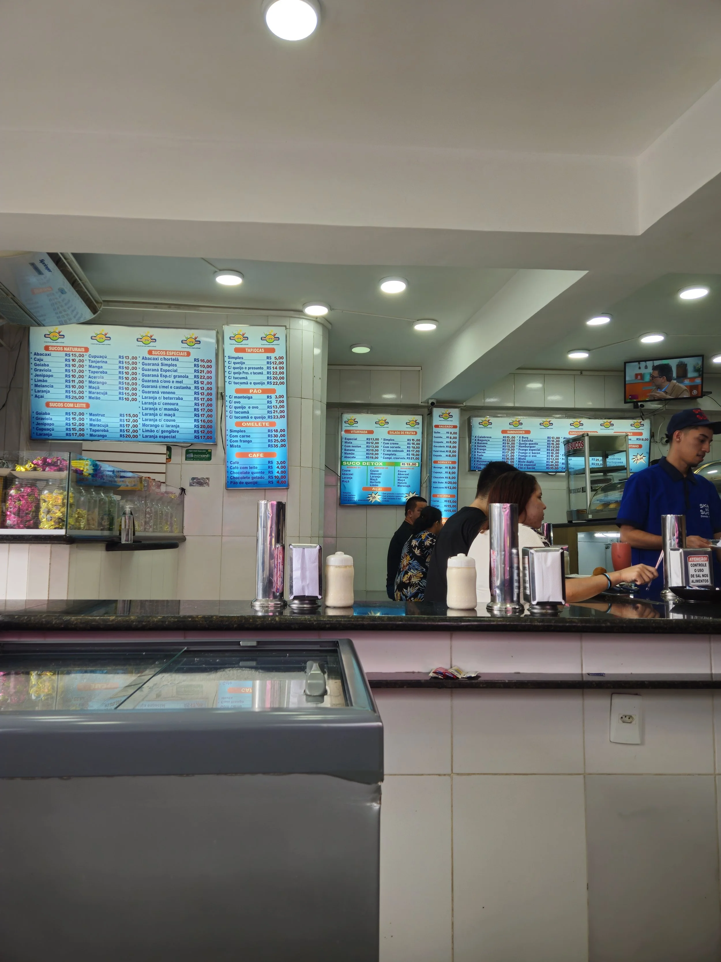 Satt der Bootstour verbrachten wir unseren Katertag aktiv auf den Straßen Manaus. Zuerst hatten wir Brunch in einer der klassischen Lancherias der Stadt (Empfehlung!). Nach dem aus Saft, Kaffee und Gebäck bestehendem Snack begaben wir uns frisch gestärkt in die Fußgängerzone. Wir beide wollten dringend unsere Trikotsammlung erweitern und shoppten etwas für ca. 5-10€ pro Stück.