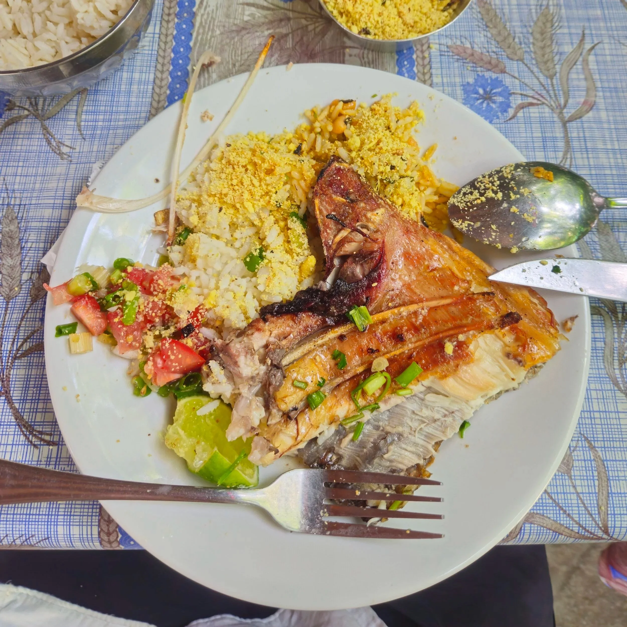Im Anschluss zum Marktbesuch luden Luca und ich Vivaldo auf einen Tambaqui de banda ein. Der halbe Fisch kam mit Reis, Farofa und weiteren Beilagen. Für insgesamt knapp 20 Euro kamen wir hier absolut auf unsere Kosten.