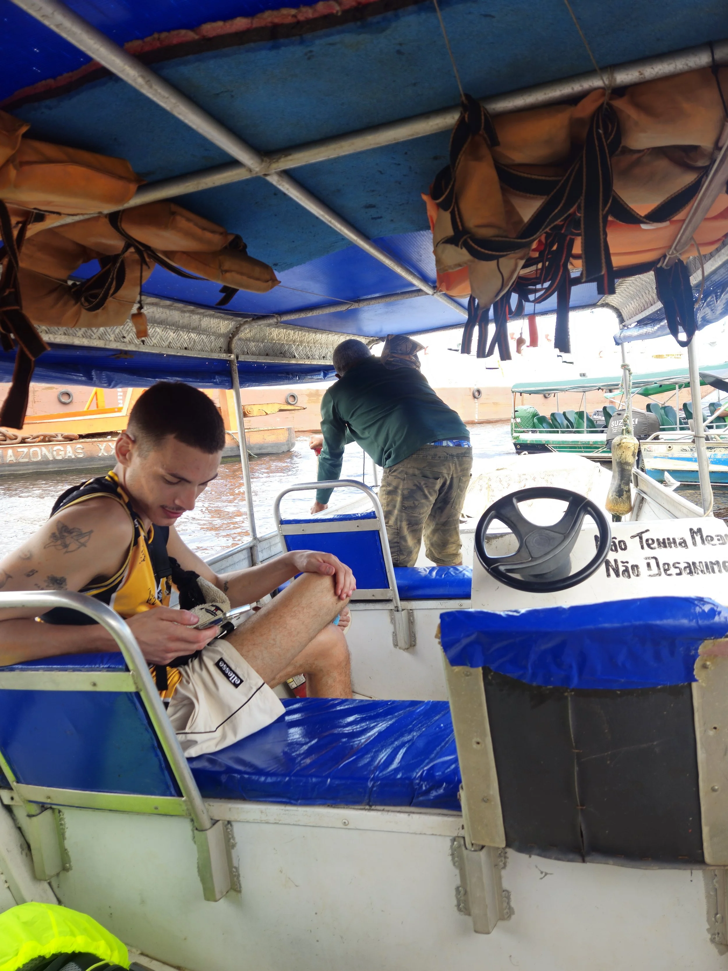 Nach dem Dschungelaufenthalt würde ich dann noch ein paar weitere Tage in Manaus verbringen. Wie erwähnt, wurde ich zu Ana nach Hause eingeladen. Aber es sollte auch noch eine Party auf dem Rio Negro auf mich warten, zu der ich von Gabriela eingeladen wurde. Sie sollte ich noch im Laufe des Tages kennenlernen. Letztendlich konnte ich die Tage nur so entspannt angehen, weil mich dazu entschied die Reise mit dem Cargoschiff auf unbestimmt zu verschieben. Im Idealfall möchte ich so eine Tour ohnehin am liebsten von Yurimaguas, Peru bis nach Belém in Brasilien durchziehen. Yurimaguas ist mein alter Nemesis: von hier aus wollten Luca, Liam und ich schon 2019 nach Iquitos tuckern, doch sind kläglich gescheitert. Außerdem hab ich mir dort Dengue eingefahren. GRRRR
